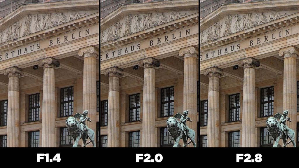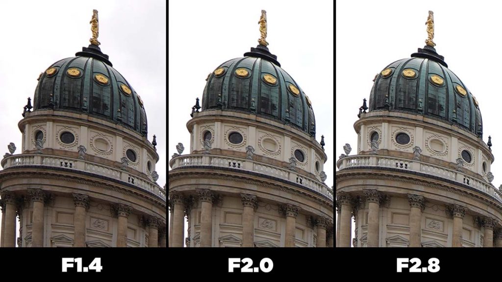 Bei F1.4 etwas dunkler, also auch etwas weniger Kontrast als bei F2.8, das liegt daran, dass das Objektiv vignettiert. Es ist auch nicht ganz so knackscharf wie in der Mitte, das liegt vermutlich an der Objektivkorrektur, weil es so super weitwinklig ist. Aber hey, das Objektiv ist richtig, richtig gut, bis in die Ecke, also bei offener Blende fotografieren gar kein Problem